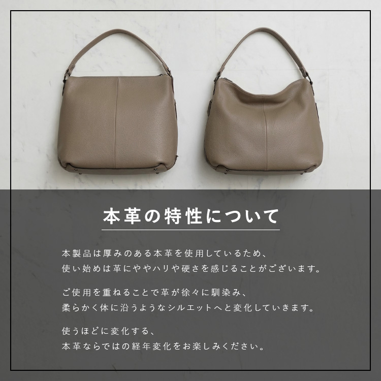 ☆ハンドルを持ち上げると重みででるくたっとしたフォルムが美しいバッグです。
