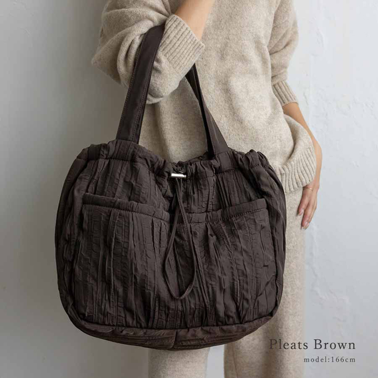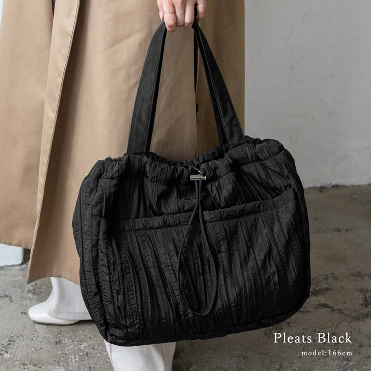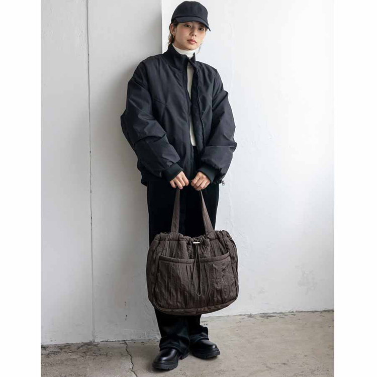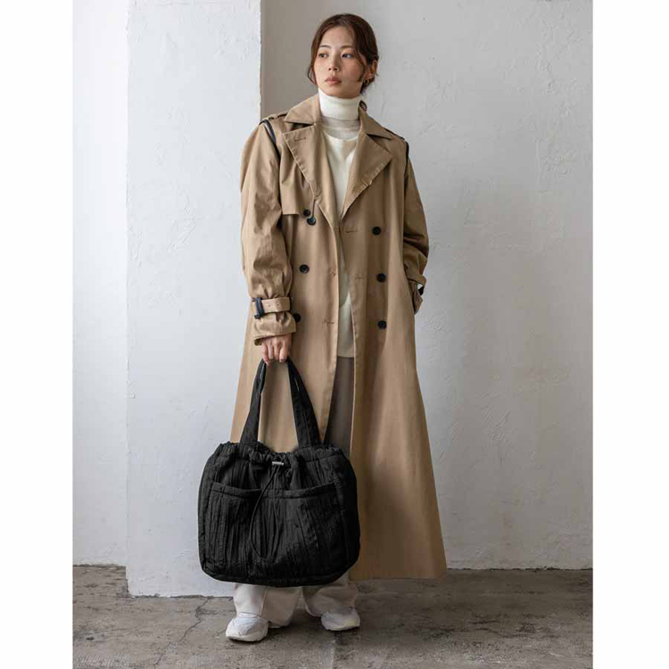 機能性と可愛さが備わった大口巾着トートバッグ。