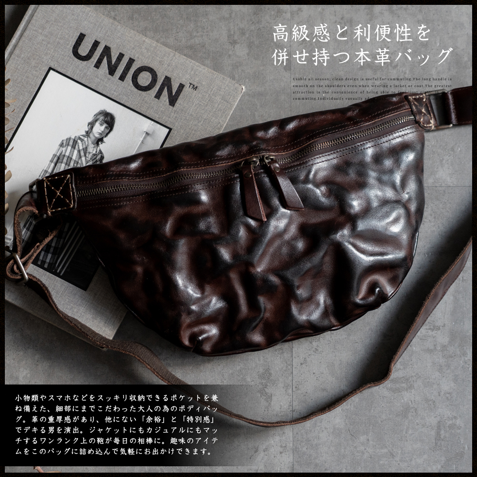 <卸>【アメリカ産レザー】【本牛革】ショルダー ボディバッグ 大サイズ 【nsb-30374n】