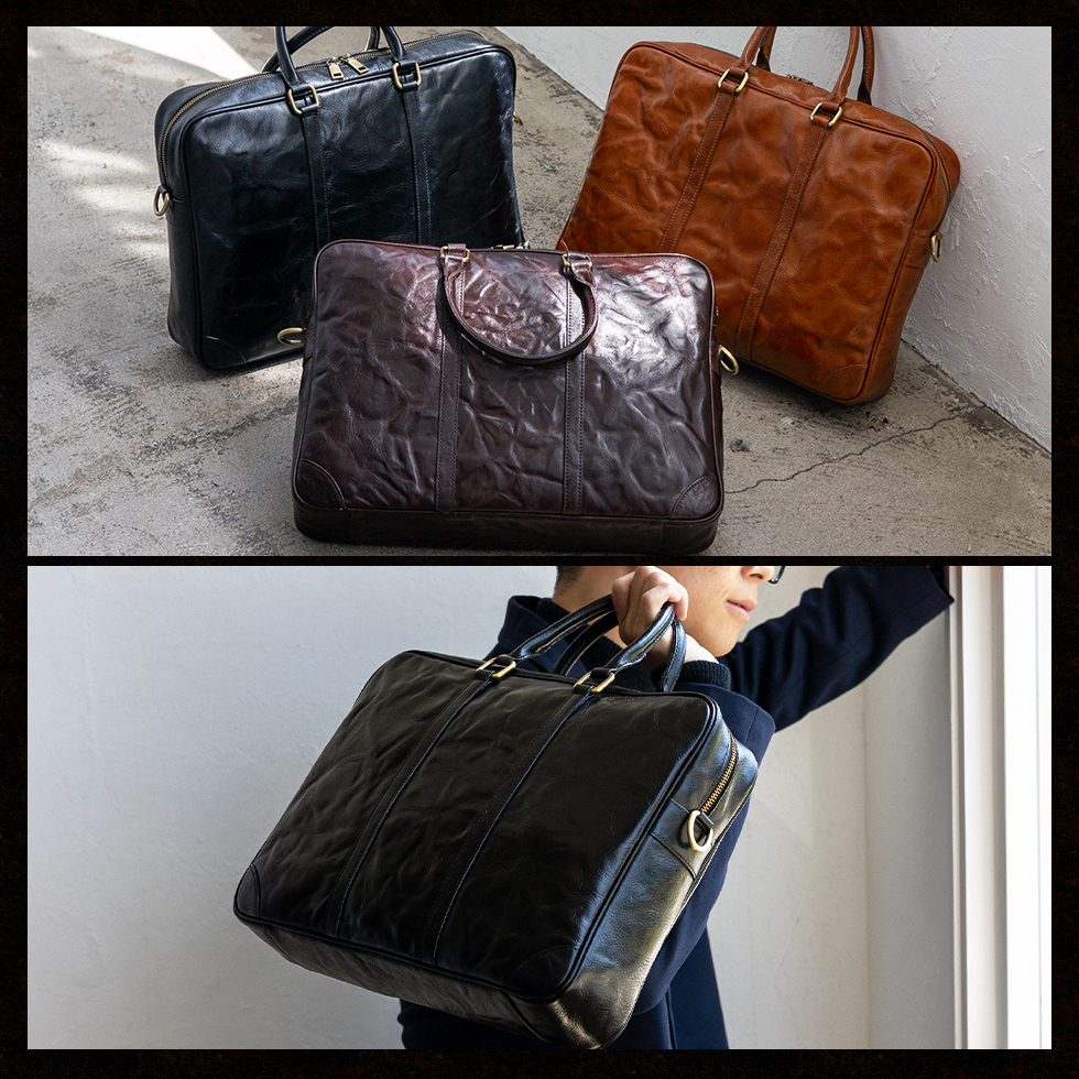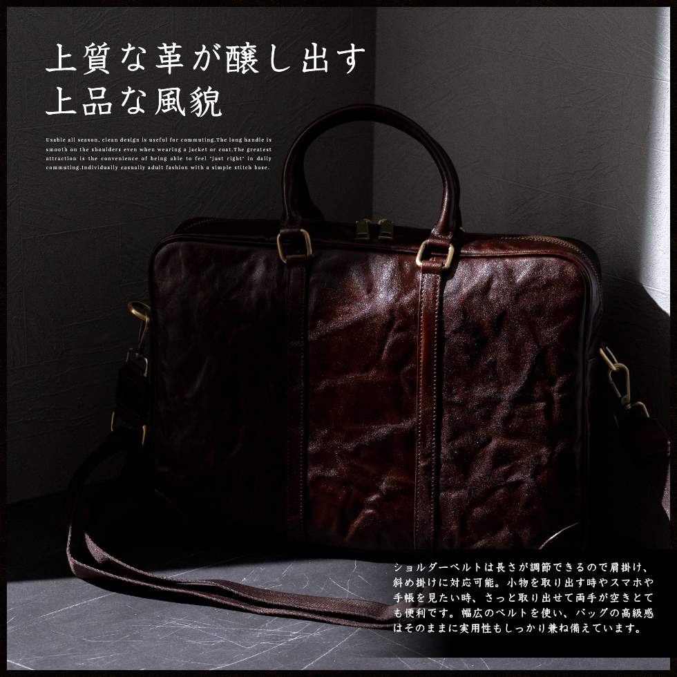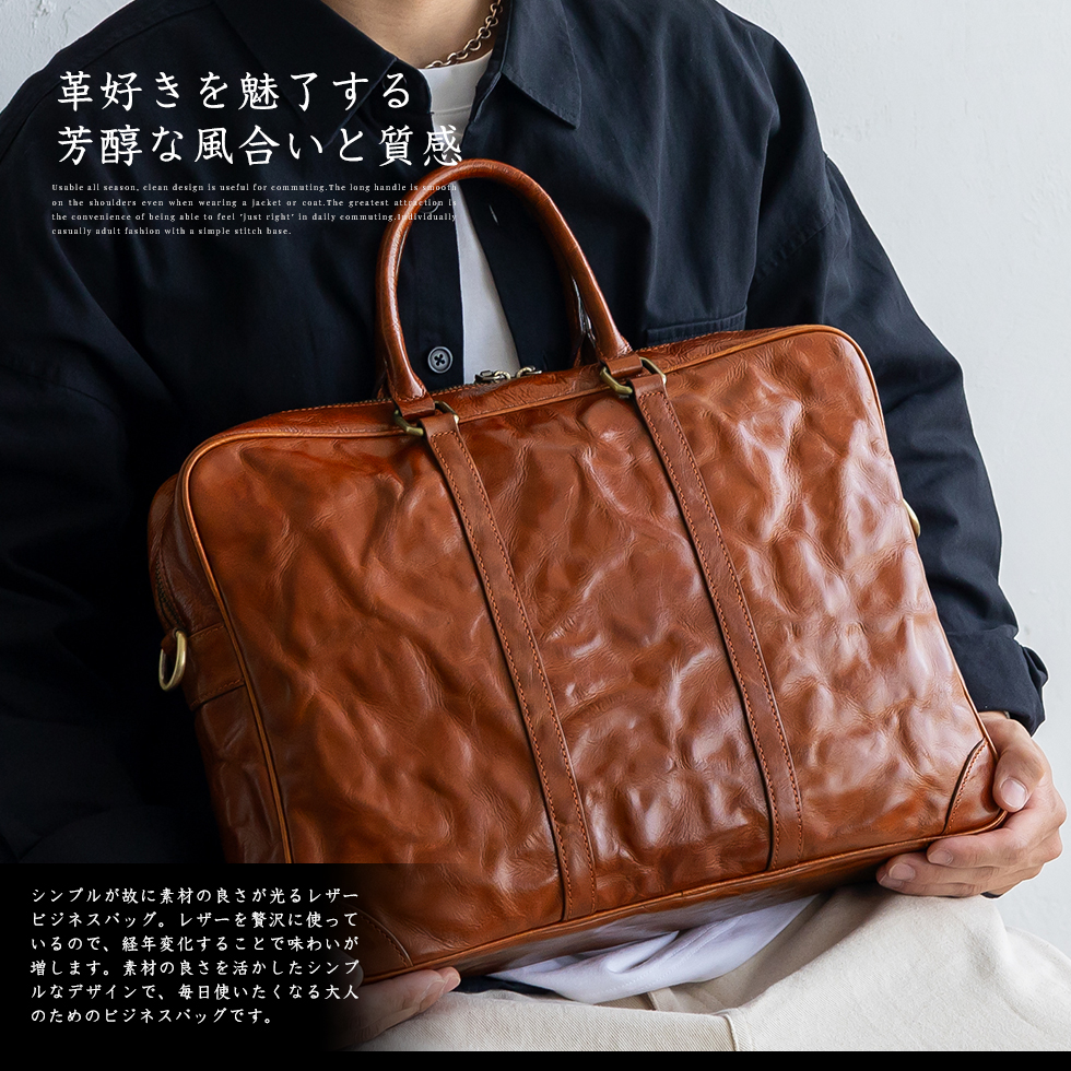 <卸>【イタリア産レザー】【本牛革】ビジネスバッグ シワ加工 2way ショルダー【nsb-30373n】