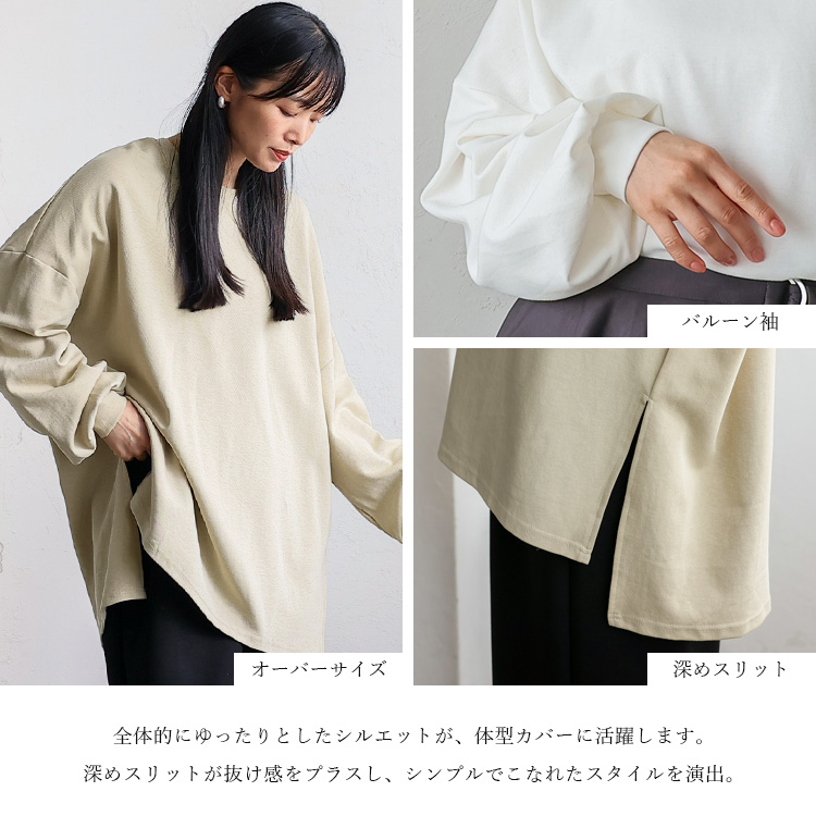 深めスリット入りオーバーサイズプルオーバーカットソー