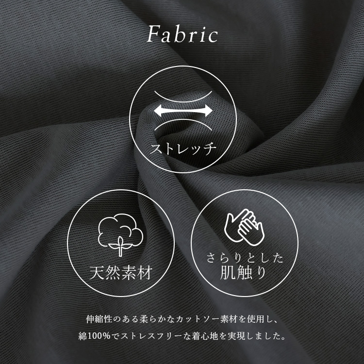 伸縮性のある柔らかなカットソー素材を使用し、ストレスフリーな着心地を実現しました。