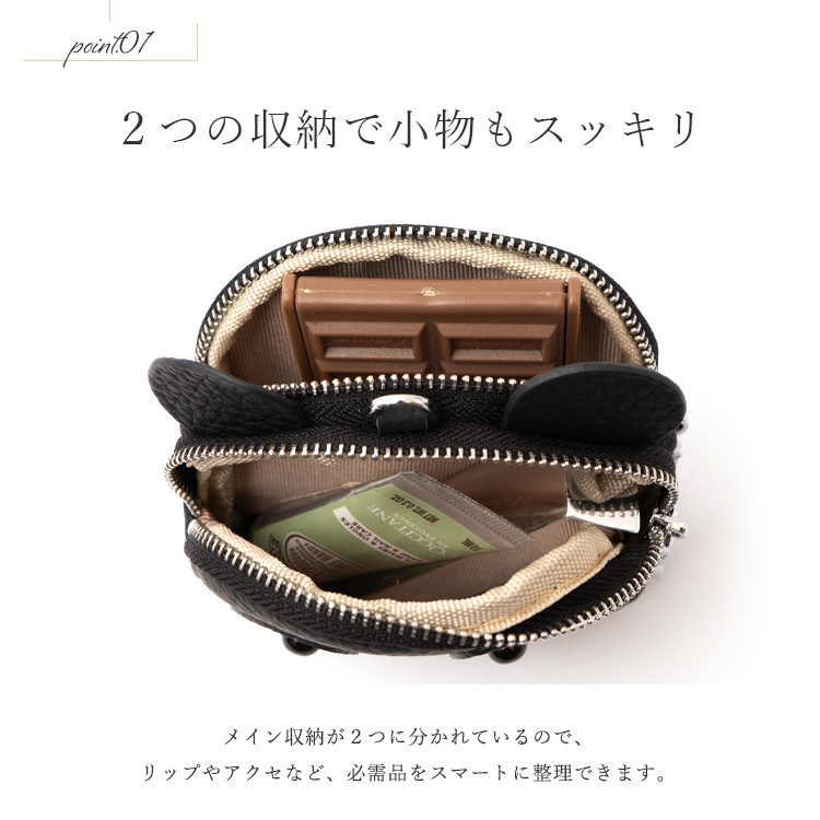 サイズ | ●SIZE:高さ:約9cm / 幅:約6cm(上辺)約9cm(下辺) / マチ:約3.6cm(約1.8cm×2) ●ショルダーベルト長さ:約80cm×幅:約1cm(取り外し可能/調節不可) ●ショルダーベルト高さ:約41cm ●外ポケット:なし ●内ポケット:なし ●ショルダーベルト重量:約13g ●バッグのみ重量:約60g ●素材:本革 ●バッグのメイン開閉口はファスナーになっております。 ●金具色:シルバー |