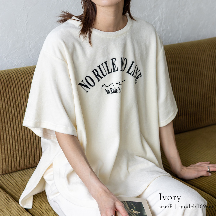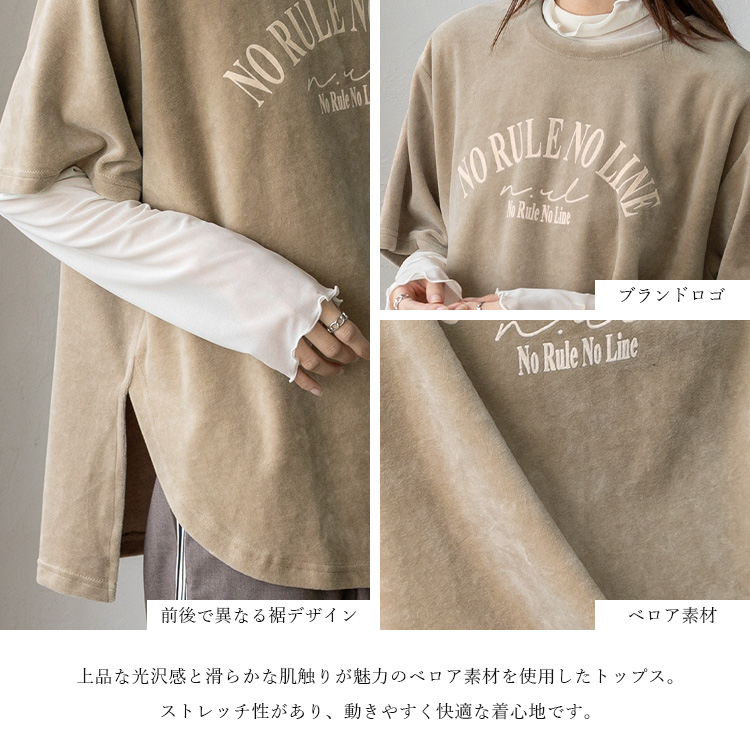<卸>【TOPS】ベロア ロゴT 半袖 ストレッチ トップス【nrc-0018】