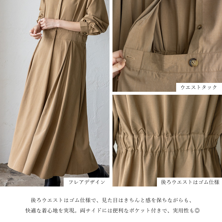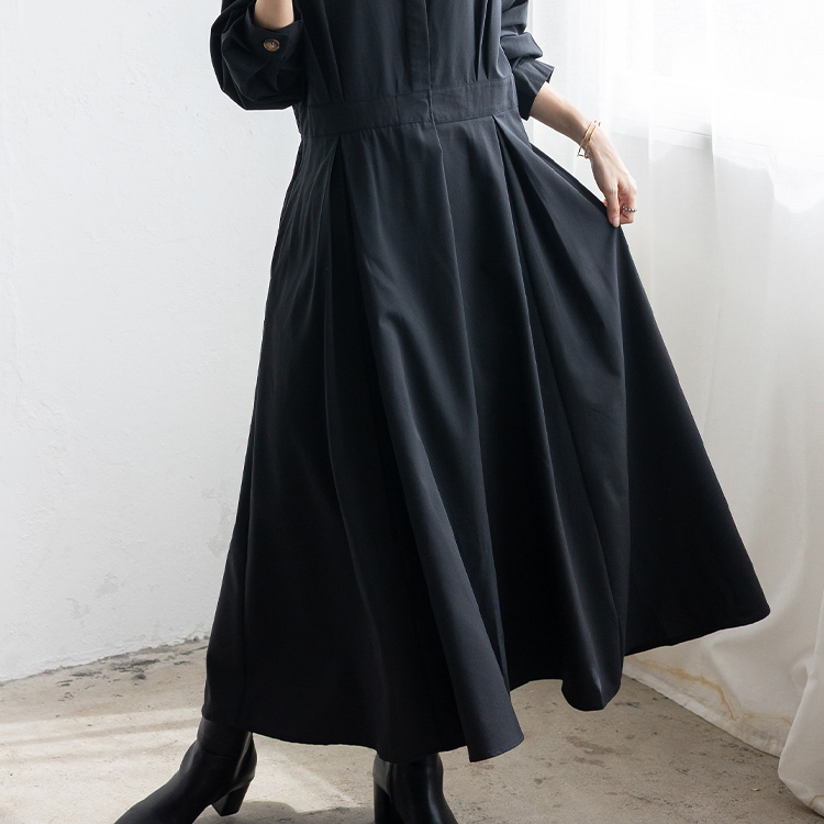 上品さと着心地の良さを兼ね備えた、きれいめタックフレアーワンピース。