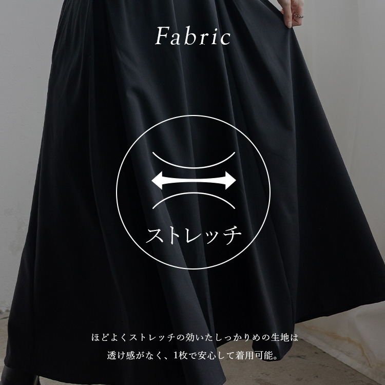 ほどよくストレッチの効いたしっかりめの生地は透け感がなく、1枚で安心して着用可能。