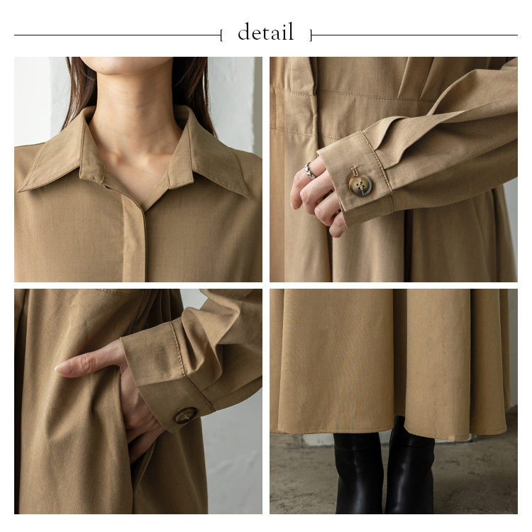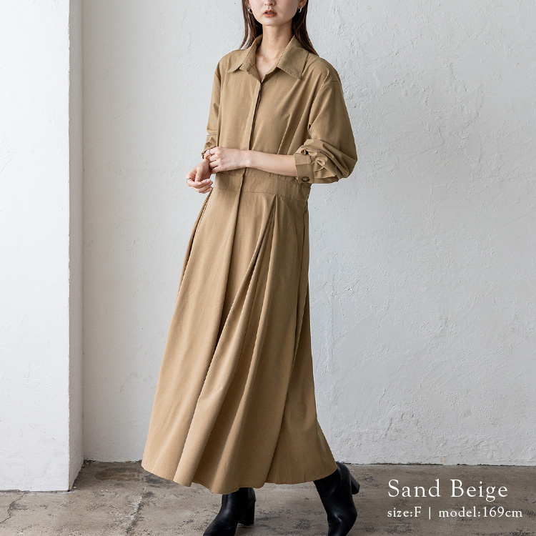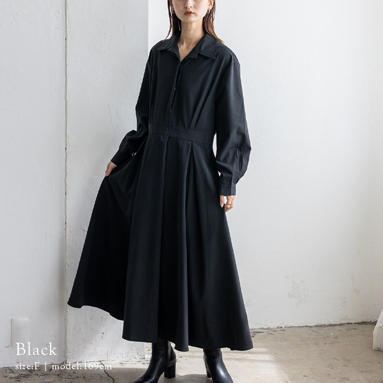 <卸>【ワンピース】タック フレアワンピース 丈長め シャツ襟【nrc-0020】
