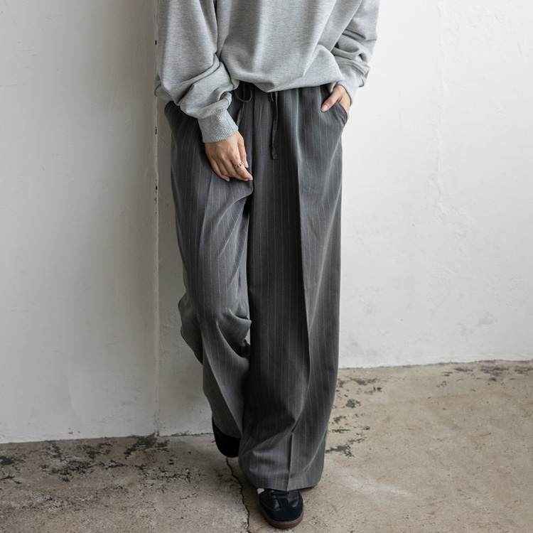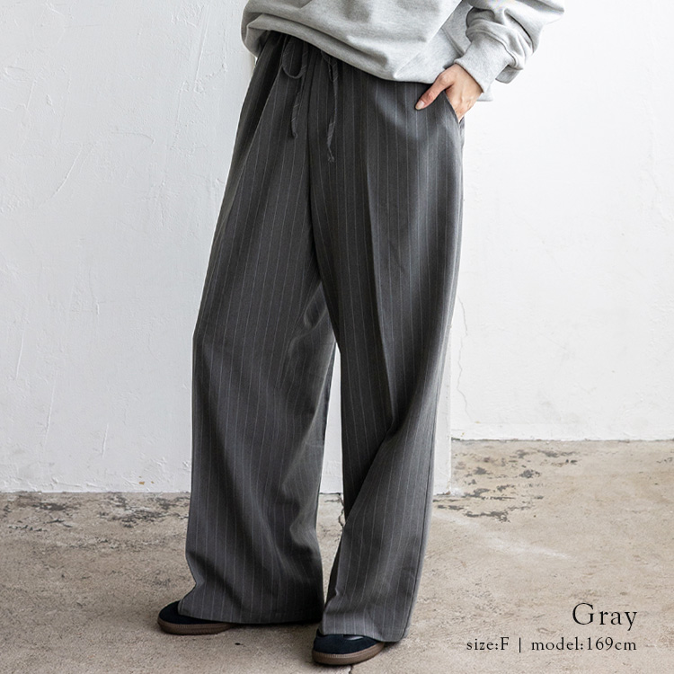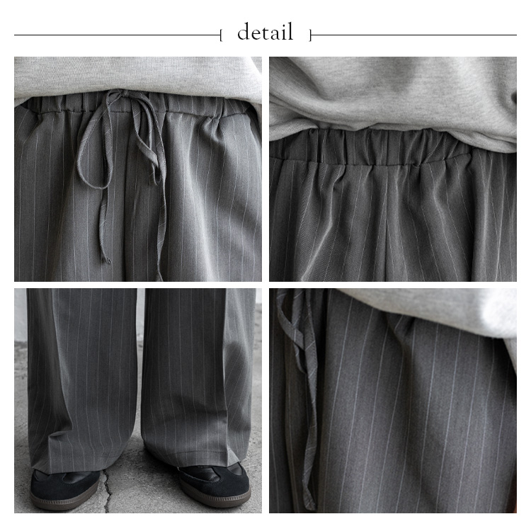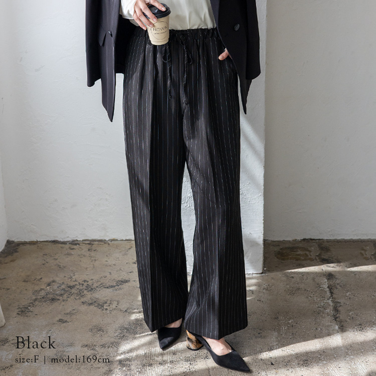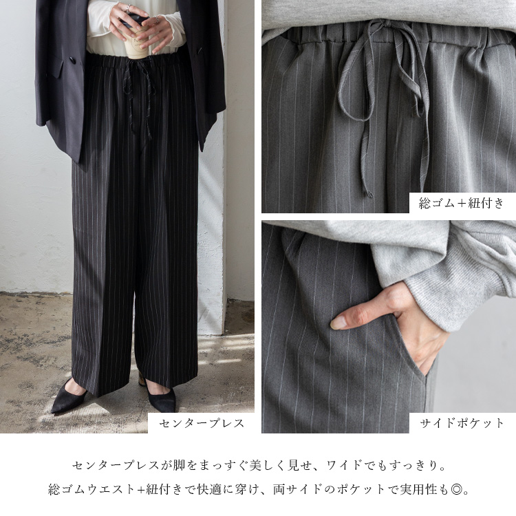 <卸>ピンストライプ ワイドパンツ スーツ オフィス服 ウエストゴム 紐【nrc-0024】