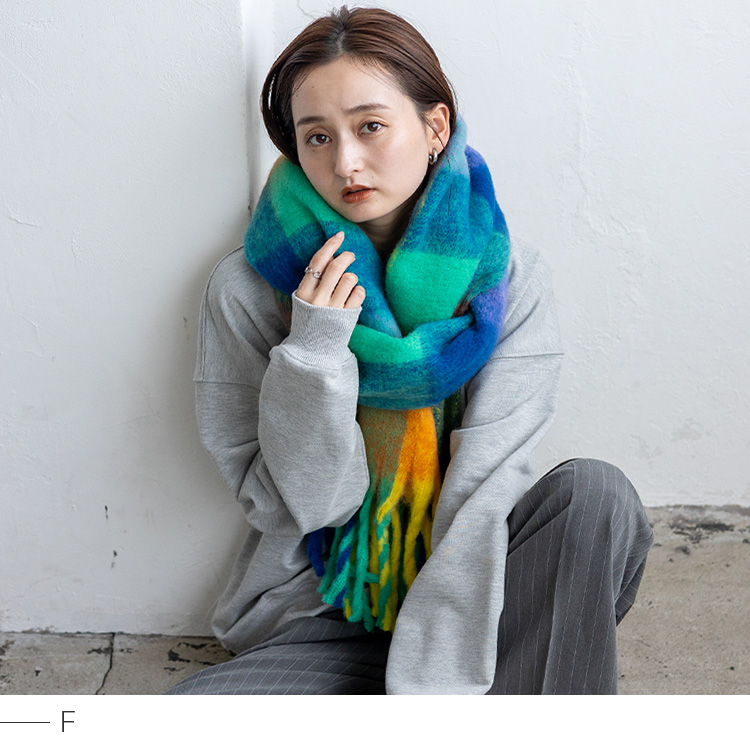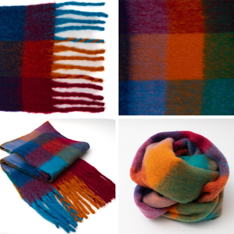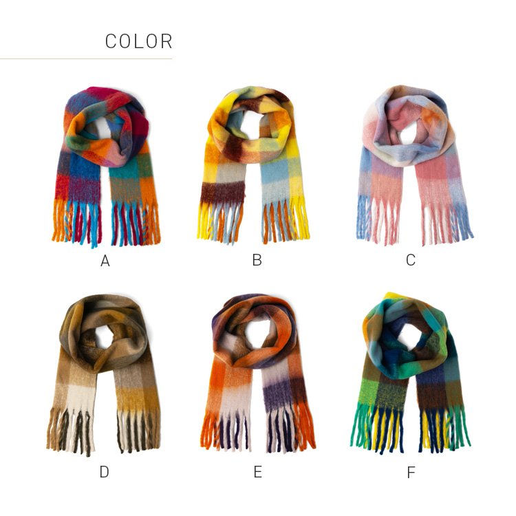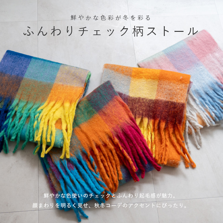 <卸>【ロングマフラー】チェック柄 モヘアタッチ やわらかい フリンジ【nss-30391z】