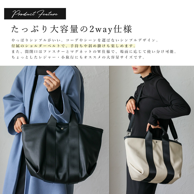 <卸>テープハンドル シンプル 2way トートバッグ 大容量 (Mサイズ)【binb-p0191y】【PU】