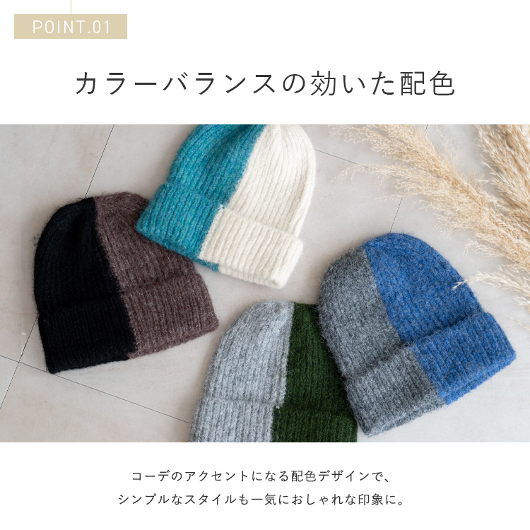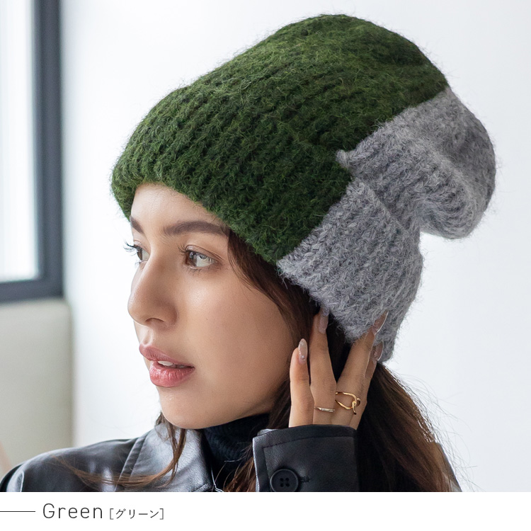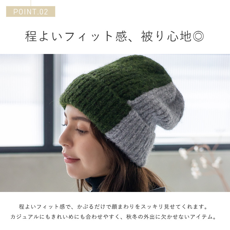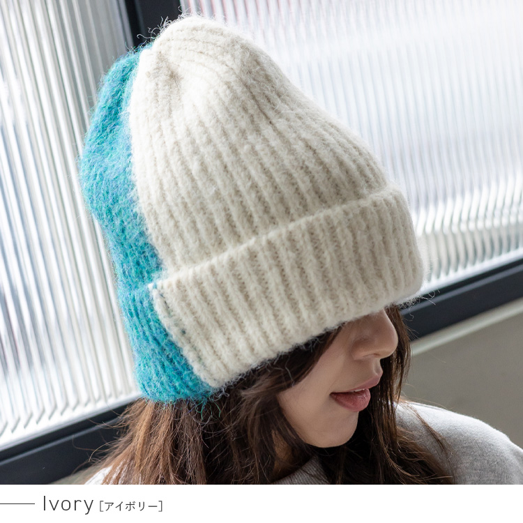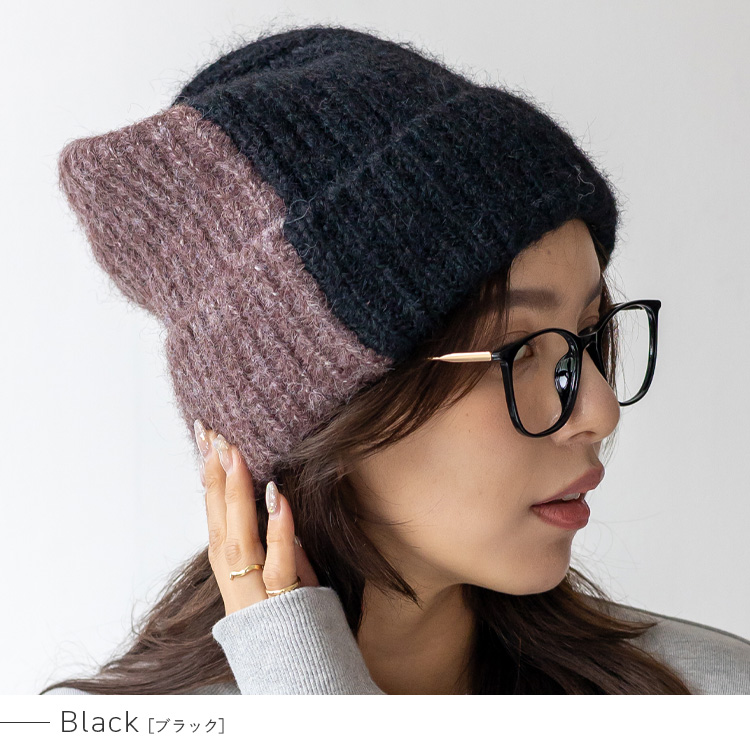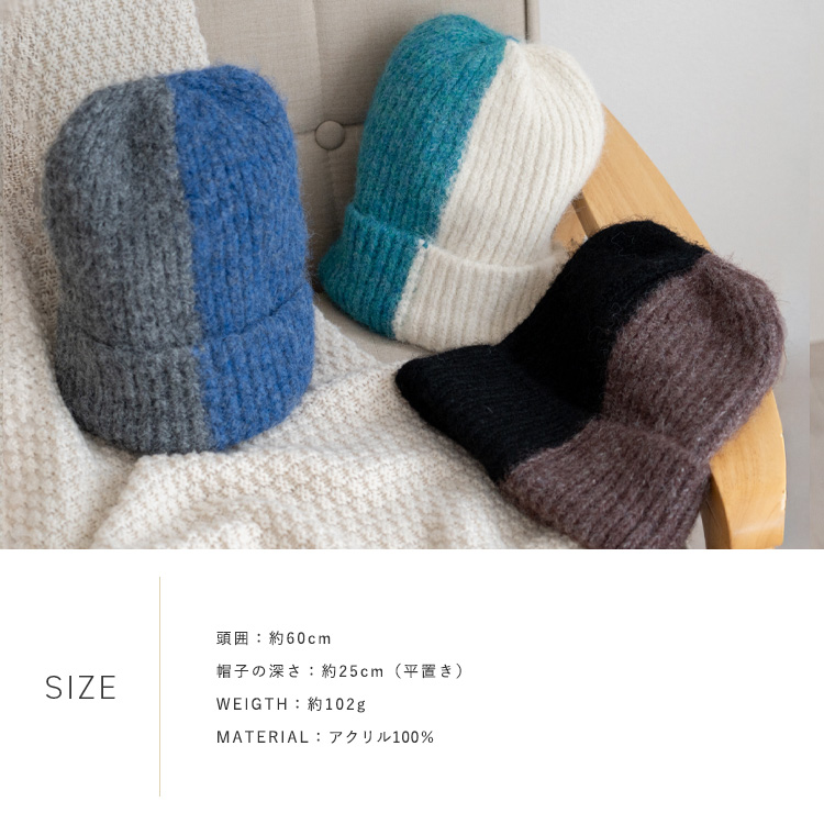 <卸>バイカラー ニット帽 ケーブルニット あったか 秋冬【reh-30390z】