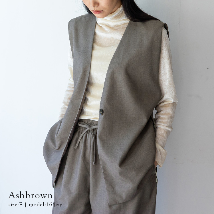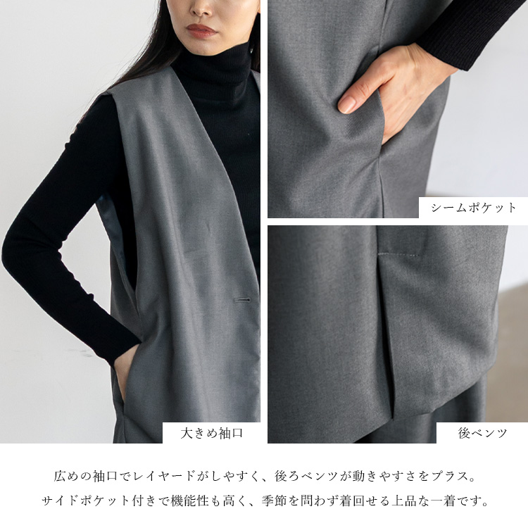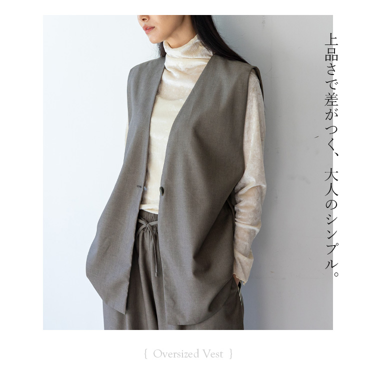 今季トレンドのレイヤードで楽しむ大人のきれいめカジュアルなオーバーサイズベスト。