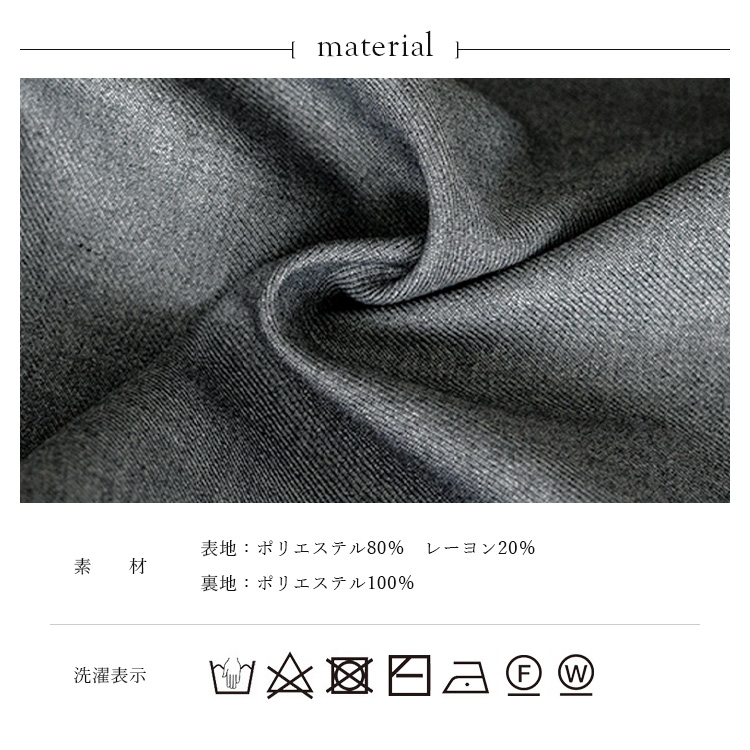 | 素材 | 表地:ポリエステル80% レーヨン20% 裏地:ポリエステル100% |