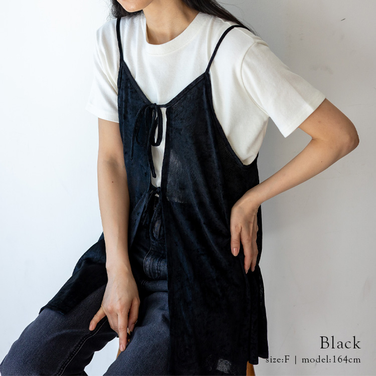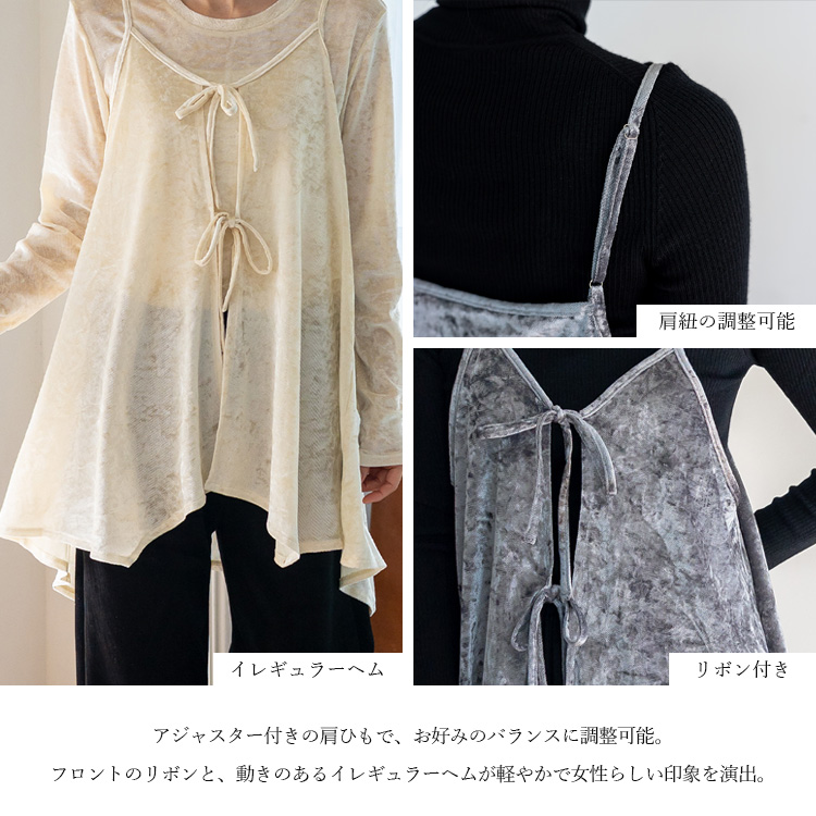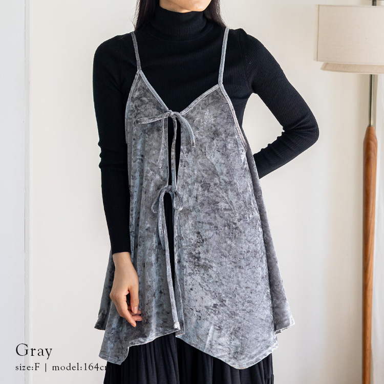 <卸>【リボン】レイヤード トップス キャミソール ベロア【nrc-0025】