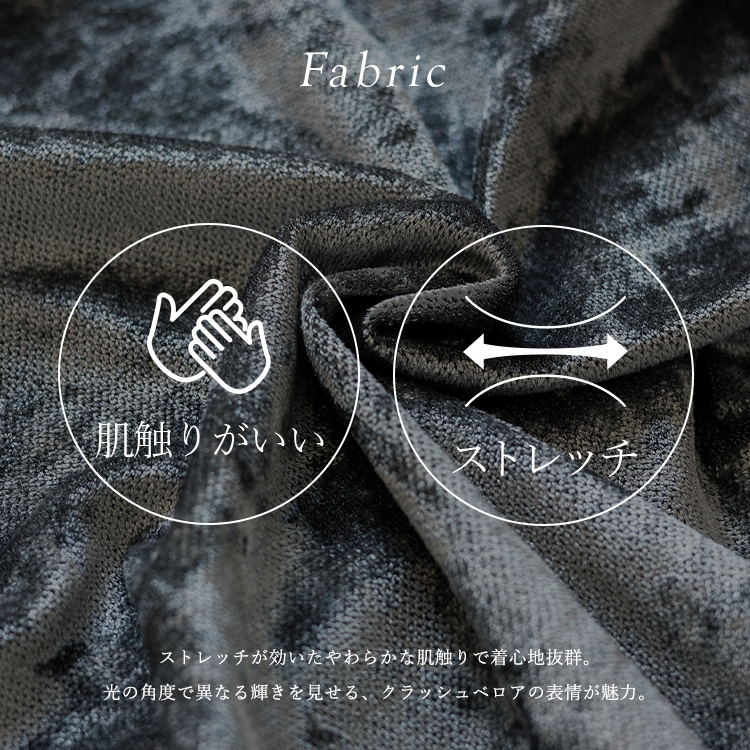 やわらかく滑らかなドレープ感が特徴で、ストレッチ入りのため肌触りも抜群。