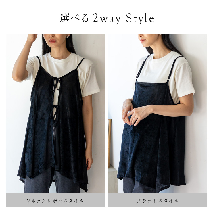 今季注目のクラッシュベロア素材を使用した、2wayリボンキャミソール。