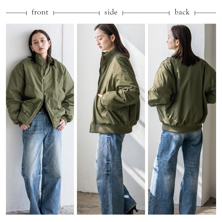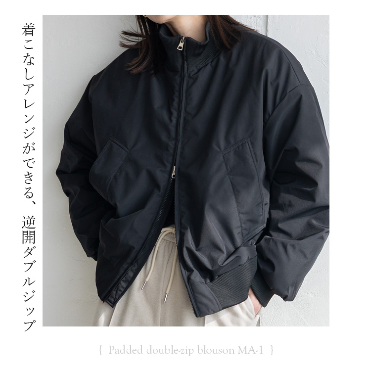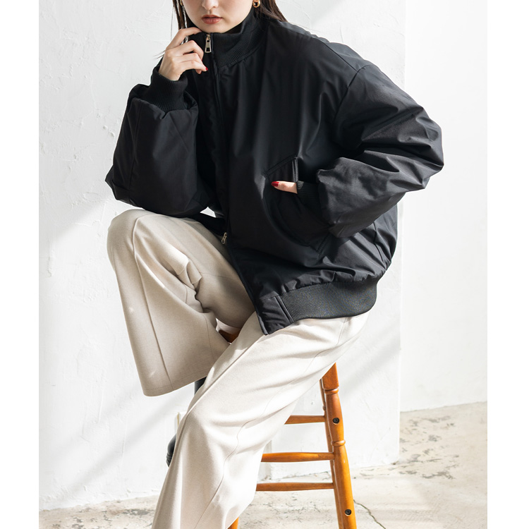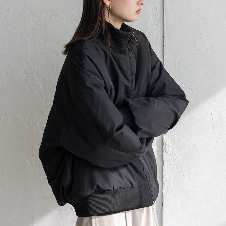 肌触りの良いしなやかな風合いの上品なマット生地を使用した中綿ブルゾン。