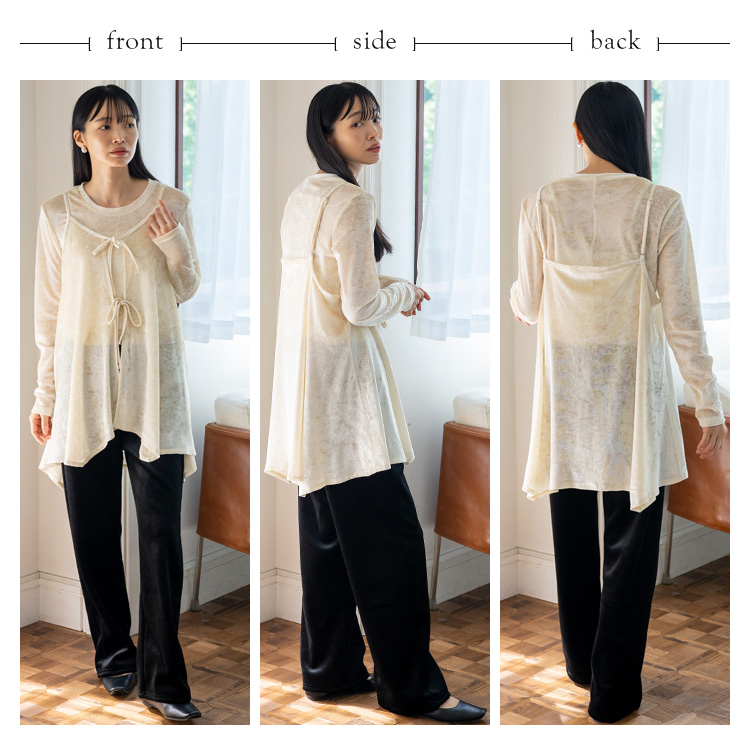 ストレッチが効いているので動きやすく、長時間の着用でもリラックスした着心地で快適に過ごせます。