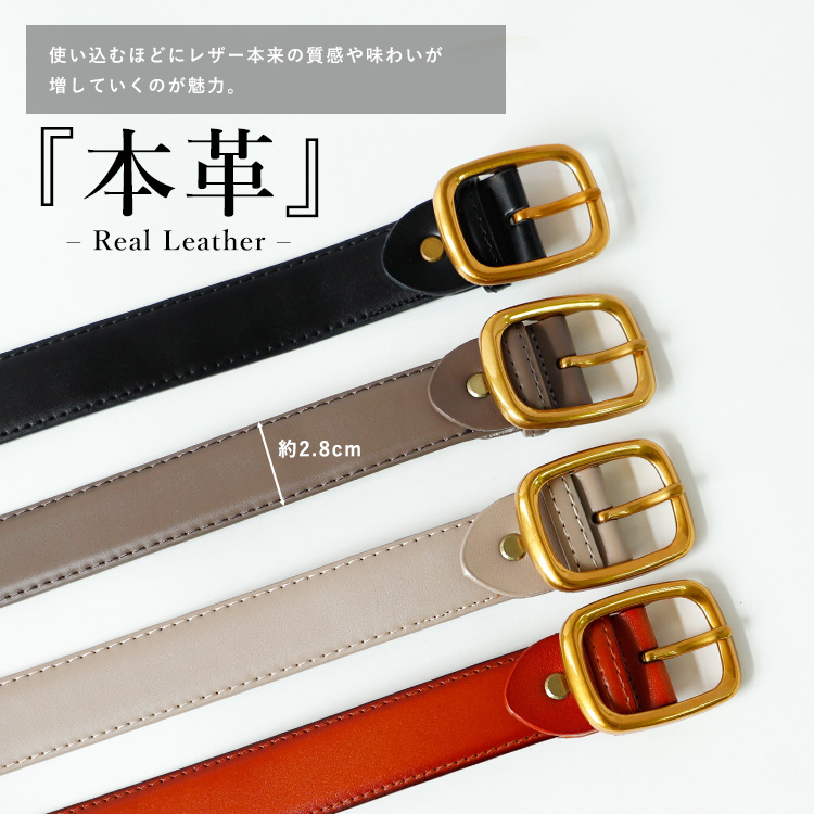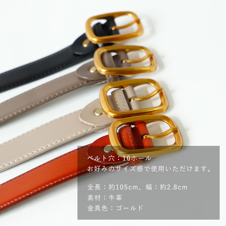 | サイズ | 長さ:105cm 幅:2.8cm 素材:牛革 金具色:ゴールド 穴の数:10個 |