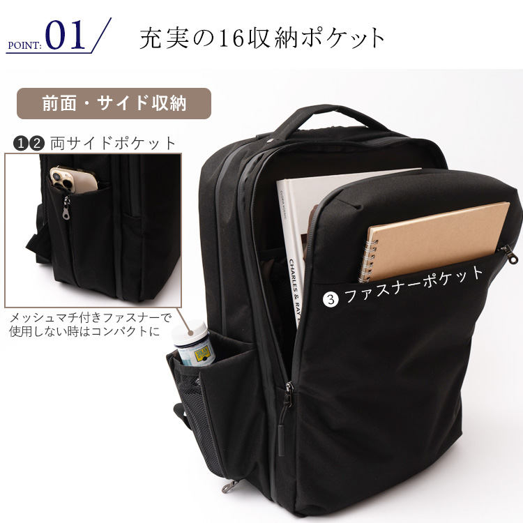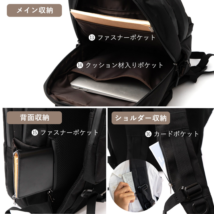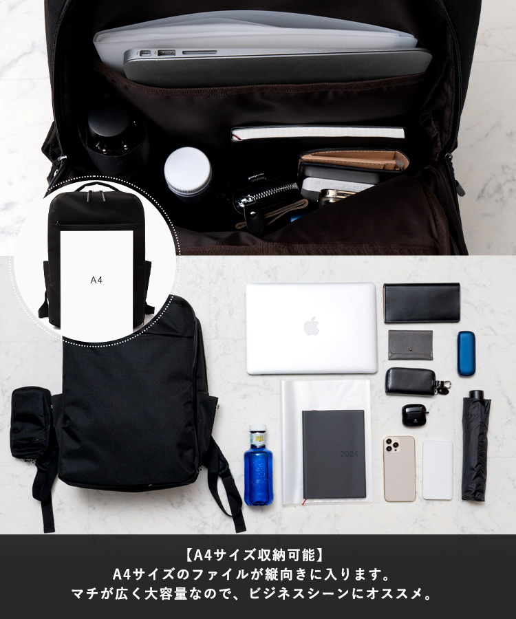 <卸>【多機能・スマホポーチ付き】PCリュック A4 ビジネス メンズ ユニセックス【inb-10206z】