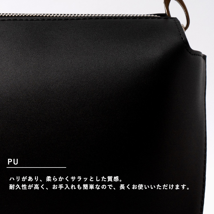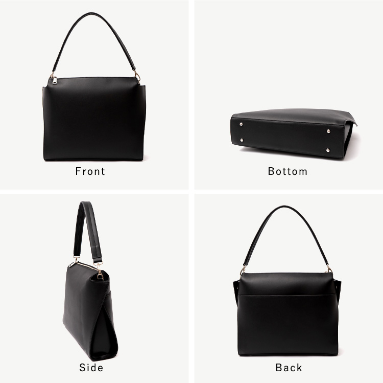 シルバー色の金具を採用し、クールな印象。凛とした佇まいのバッグです。
