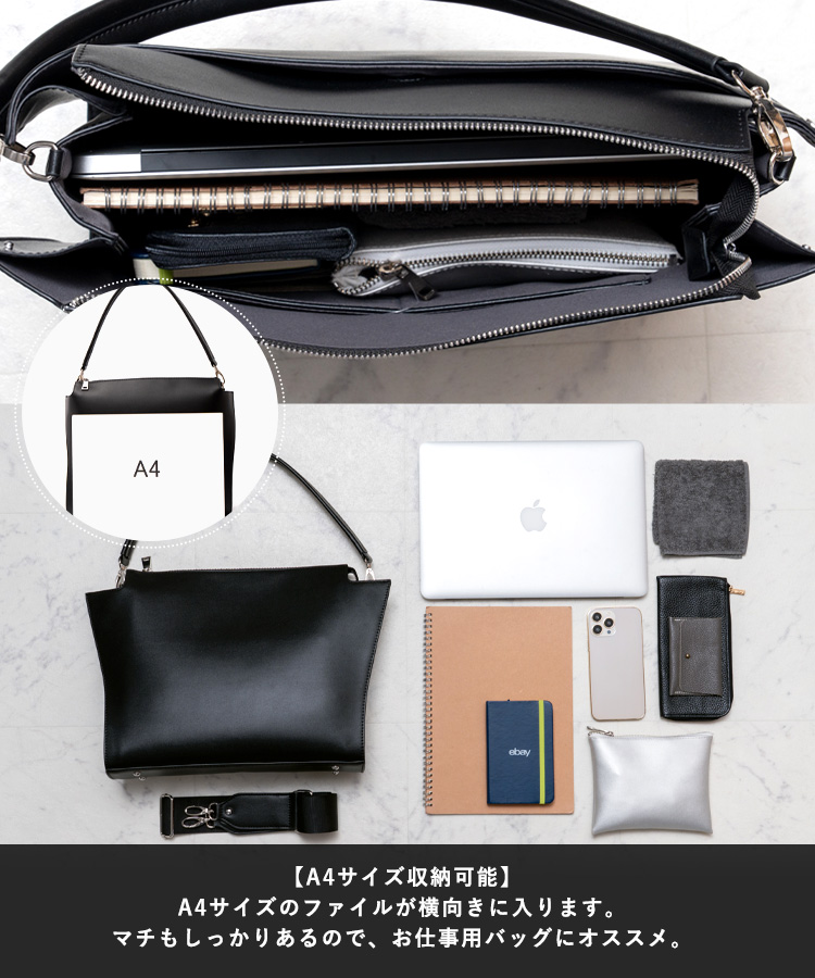 ●A4がすっぽりと入るサイズ感でノートパソコンも入るショルダーバッグ