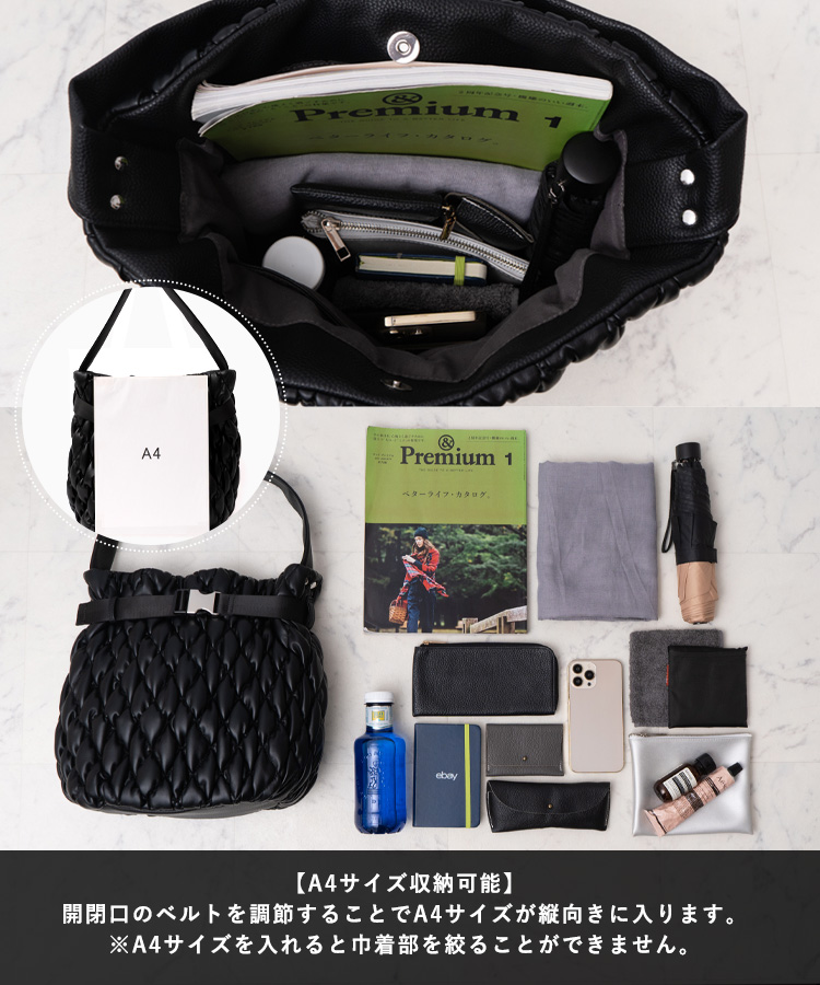 肩にかけたまま出し入れでてき、実用性も抜群です。