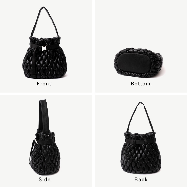 ダイヤ柄のキルティングを施したワンショルダーバッグ。