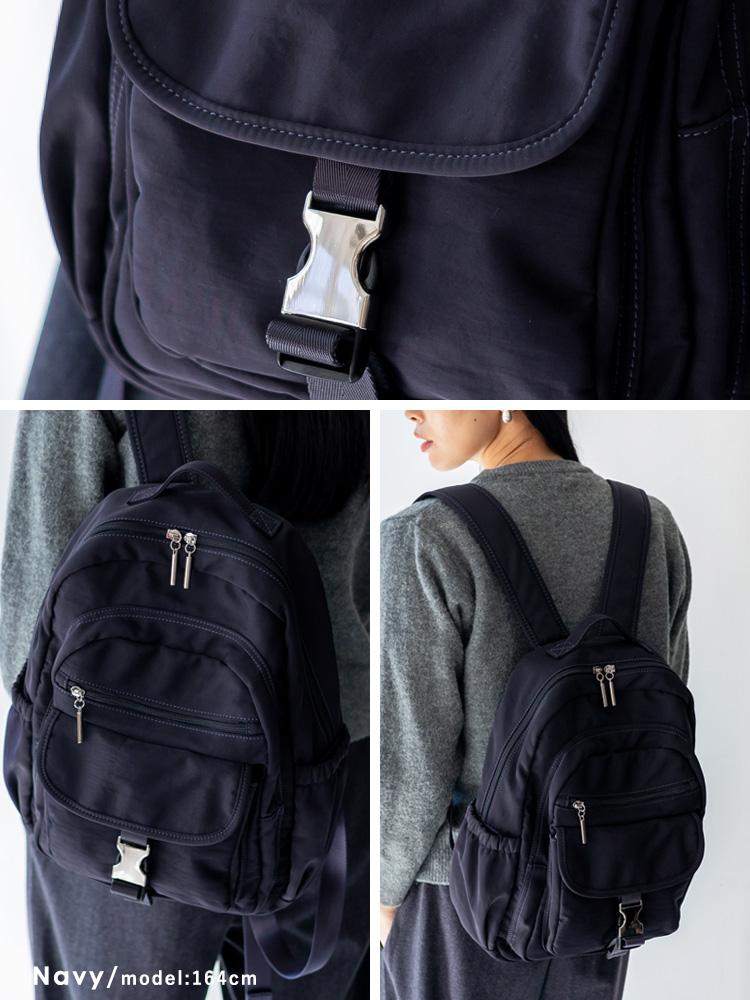 <卸>【ミニリュック】撥水ナイロン シルバーバックル 8ポケット【nsb-30359z】