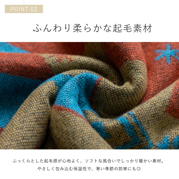 | サイズ | ブラック・ネイビー・オレンジ ●全長:約156cm× 横139cm ●重さ:約468g ●素材:アクリル/ポリエステル グレー・ベージュ・ボルドー ●全長:約151cm× 横139cm ●重さ:約448g ●素材:アクリル/ポリエステル |