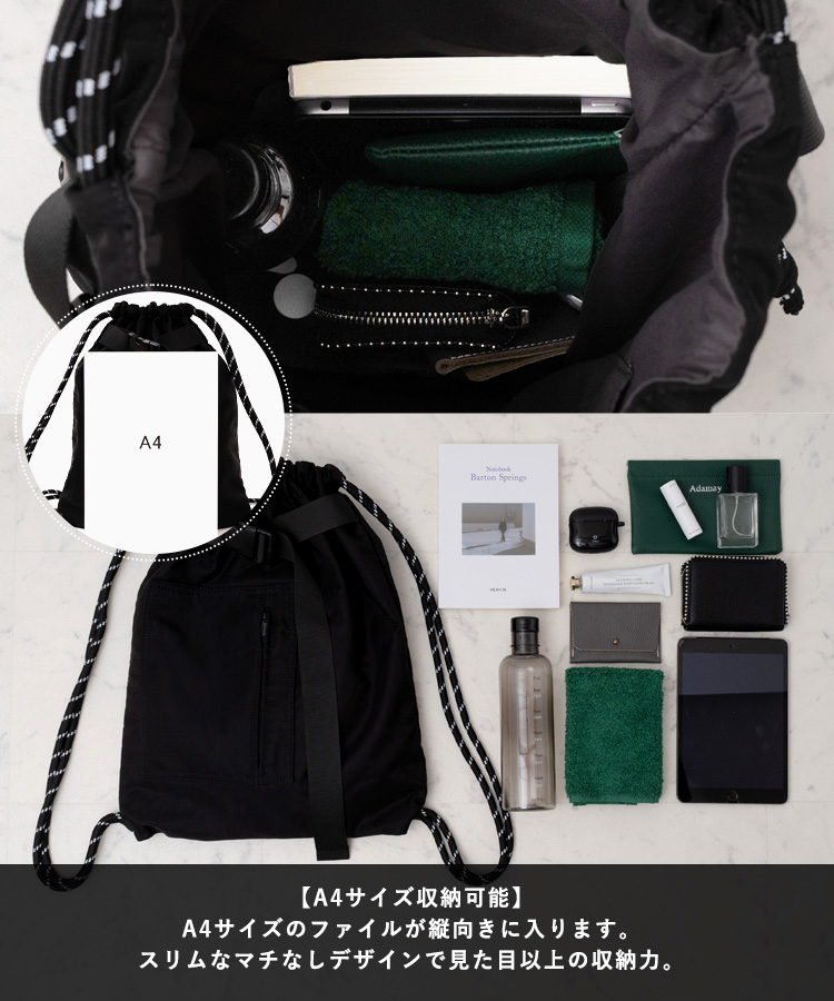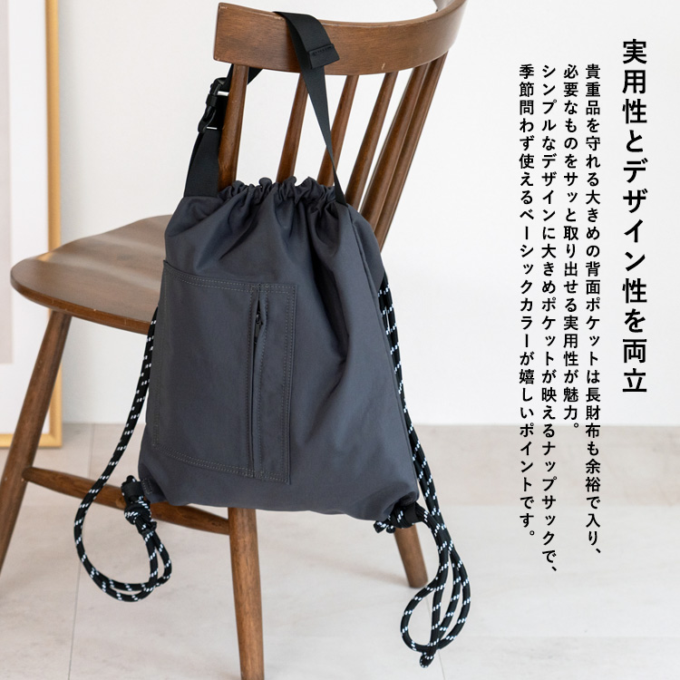 カジュアルだけど使いやすさにこだわったナップサックです。