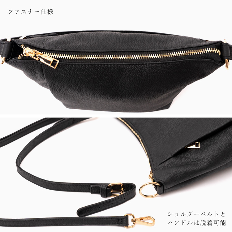 | サイズ | ●SIZE:高さ:約22cm(サイド)約15cm(中央) / 幅:約27cm(上辺)約20cm(下辺) / マチ:約12cm ●ハンドル長さ:約46~51cm×幅:約1.8cm、持ち手高さ:約28~33cm ●ショルダーベルト長さ:約63~119cm×幅:約1.3cm(取り外し可能/調節可) ●外ポケット:前面ファスナー付きポケット1、背面ファスナー付きポケット1 ●内ポケット:オープンポケット1、ファスナー付きポケット1 ●ハンドル重量:約65g ●ショルダーベルト重量:約81g ●バッグのみ重量:約360g ●素材:本革(牛革) ●仕様:2way ●バッグのメイン開閉口はファスナーになっております。 ●金具色:ゴールド |