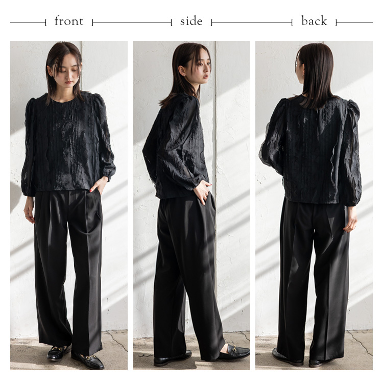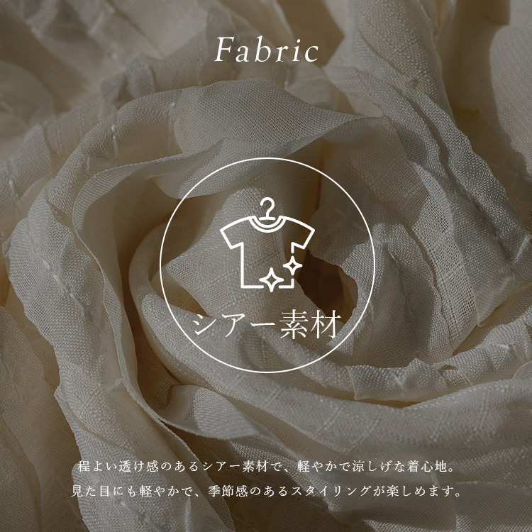 程よい透け感のあるシアー素材を使用し、軽やかで女性らしい印象に仕上げました。