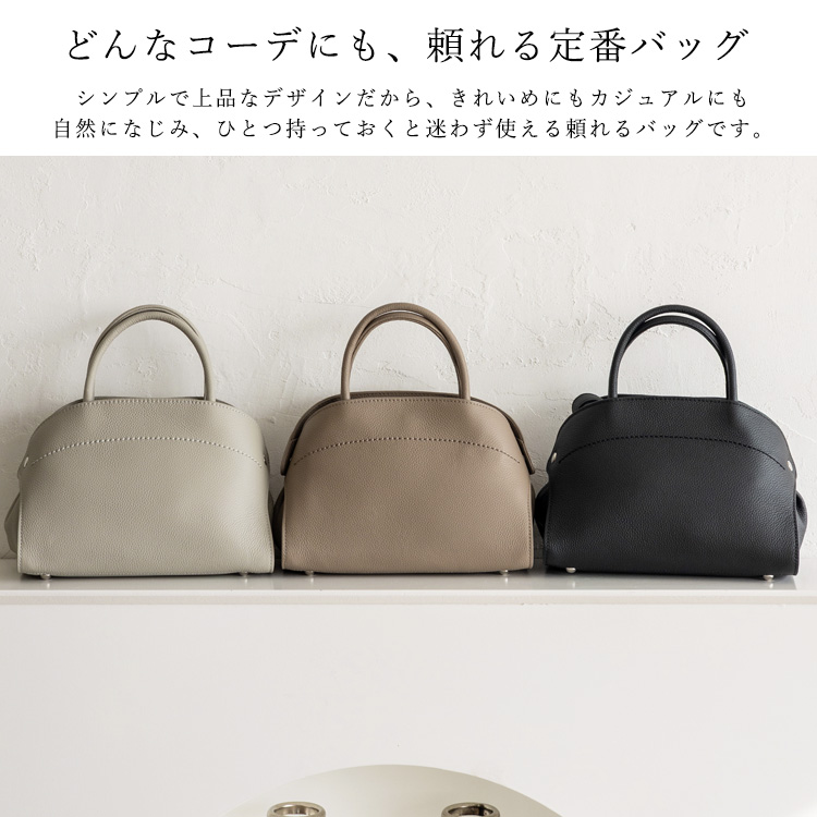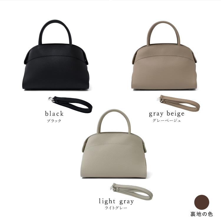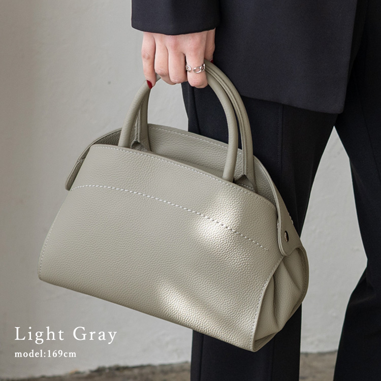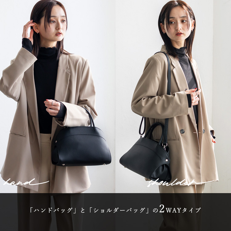 ●シンプルなラウンド型フォルムに、さりげないステッチがアクセントになった上品なハンドバッグ。