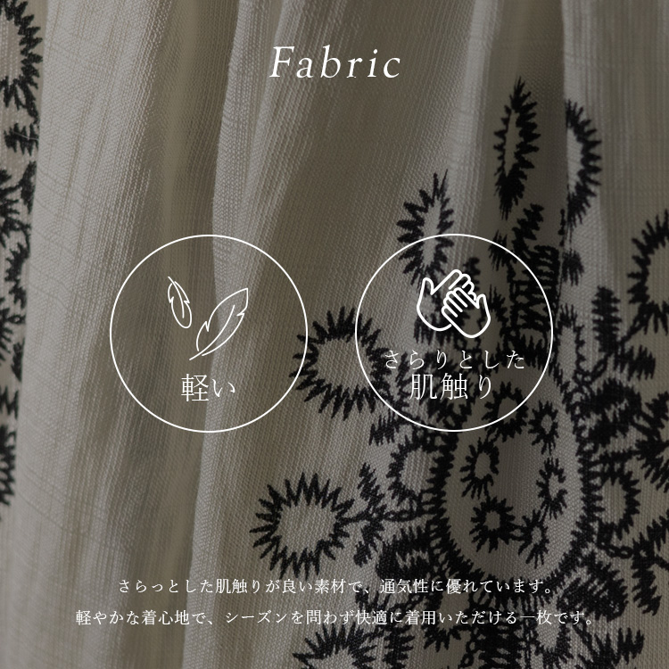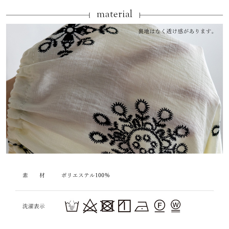 | サイズ | サイズ:FREE 総丈:122cm 脇丈:102cm 身幅:69cm 袖口:28cm ウエスト紐長さ:158cm 重量:290g 素材:ポリエステル100% …………………… 伸縮性:なし 裏地:なし 透け感:あり 生地の厚さ:普通 ポケット:あり …………………… |
