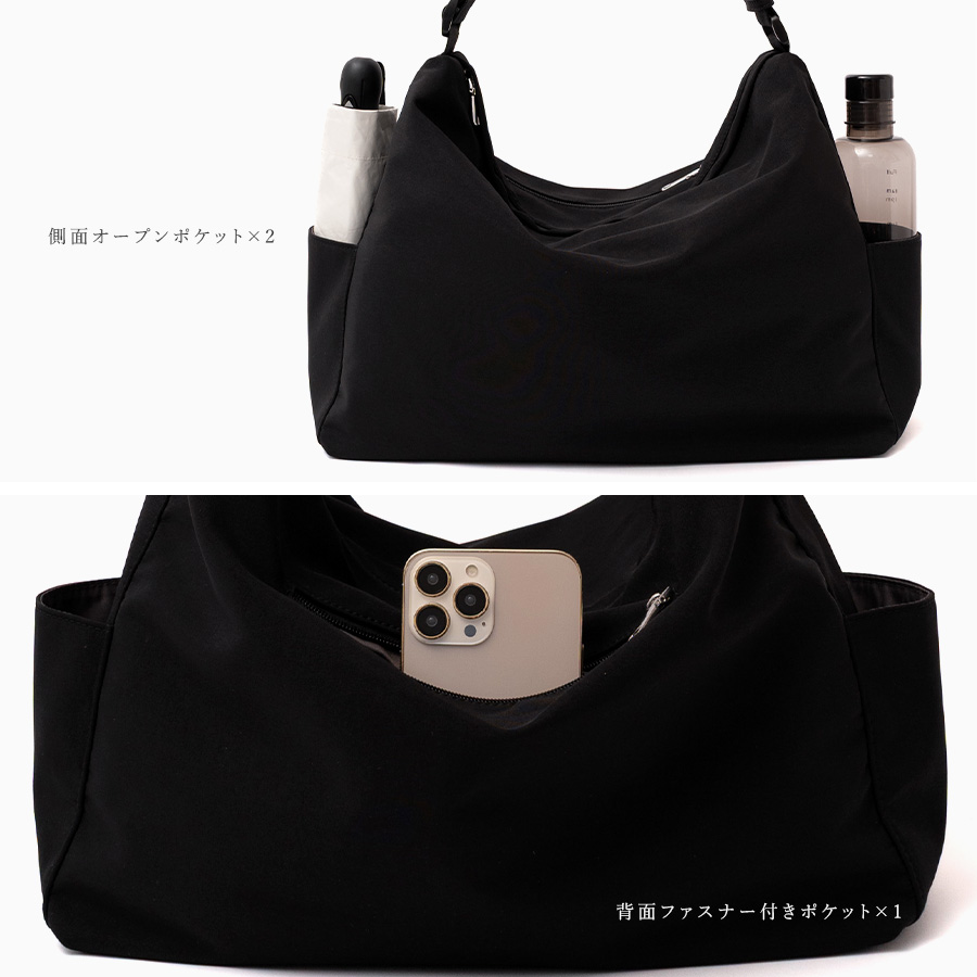 バッグ内外に複数のポケットを配置しているので細やかな収納を叶えます。