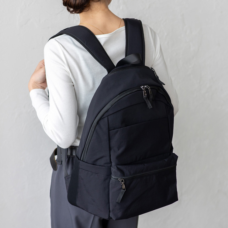 ミニマルで大人っぽいルックスが魅力の多機能リュック。